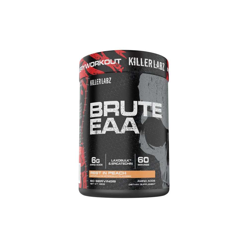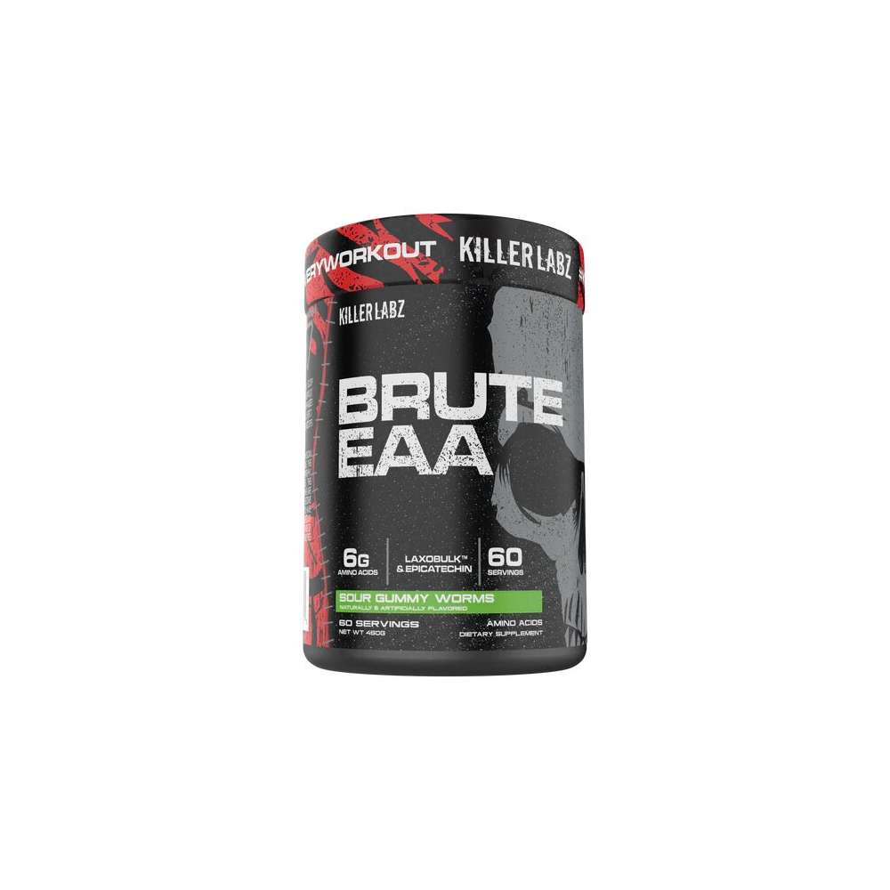 Brute EAA contiene 6 gramos de aminoácidos esenciales en cada servicio, además de los ya conocidos aminoácidos de cadena ramificada. Cada envase contiene 60 tomas en cuatro sabores: Furious Punch, sour gummy worms, southern tea y rest in peach, los cuales son en español: Ponche de frutas, gomitas acidas, te negro y durazno.