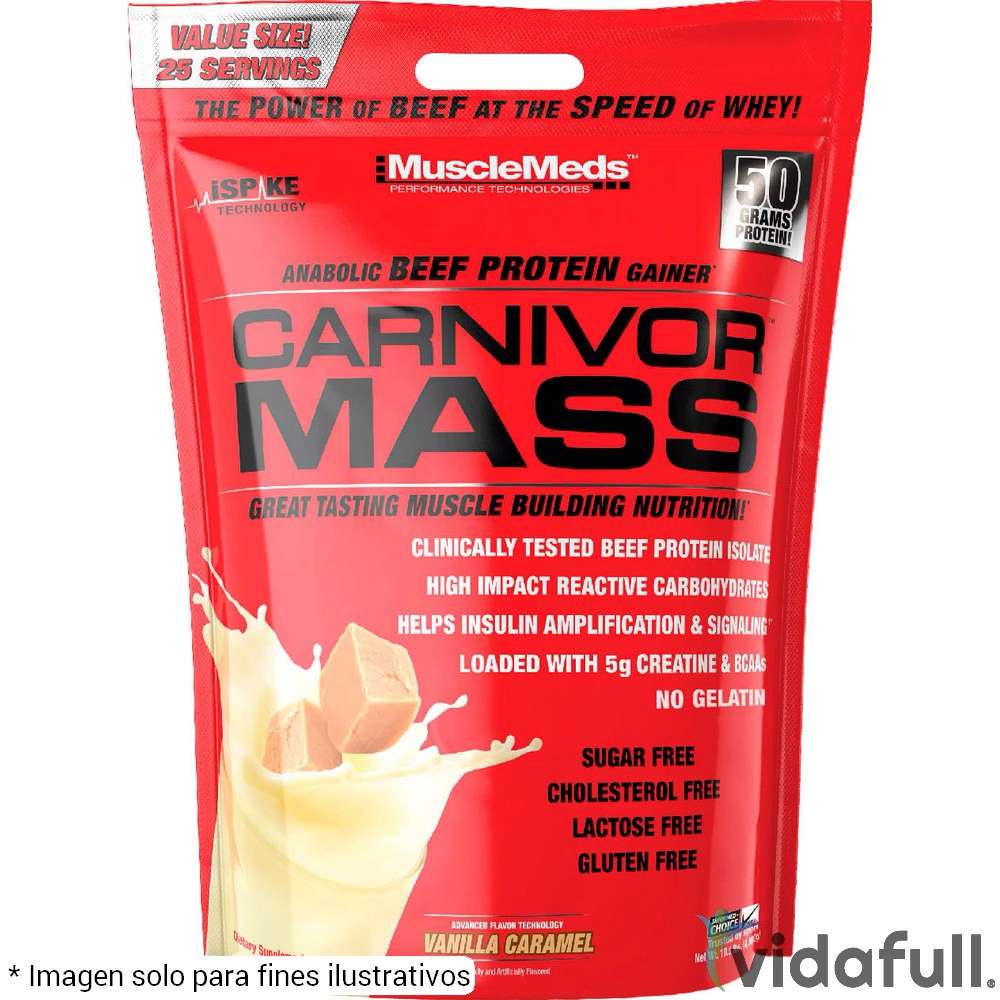 Carnivor Mass de MuscleMeds es un suplemento de aumento de masa muscular que se destaca por su contenido de proteína de carne de res.
