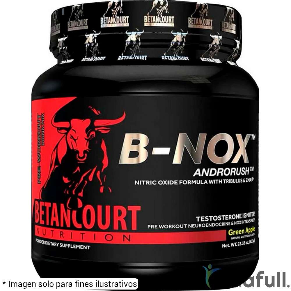 Bullnox B-Nox De la marca americana Betancourt Nutrition es un poderoso pre-entreno potenciador del oxido nítrico y de la testosterona en polvo que contiene tres formas de creatina y beta alanina para aumentar la fuerza y la resistencia muscular. Bullnox B-Nox Androrush es el primer pre-entreno de oxido nítrico que te proporciona una mezcla para potenciar la producción natural de testosterona impulsar que te ofrece una intensa energía y unos grandes bombeos musculares durante el entrenamiento.