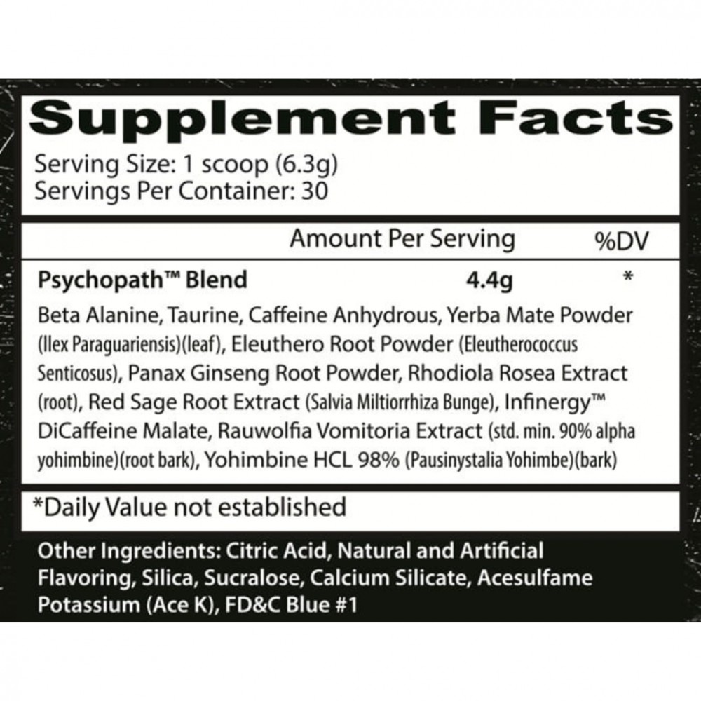 ¡DENTRO DEL GYM, eres un PSICÓPATA! Esta NUEVA fórmula, creada por la mente retorcida de The Mad Chemist, NO ES PARA DELICADOS ya que ¡está repleta de ingredientes que garantizan MAXIMIZAR tus entrenamientos! Los principales beneficios de los ingredientes activos incluyen: