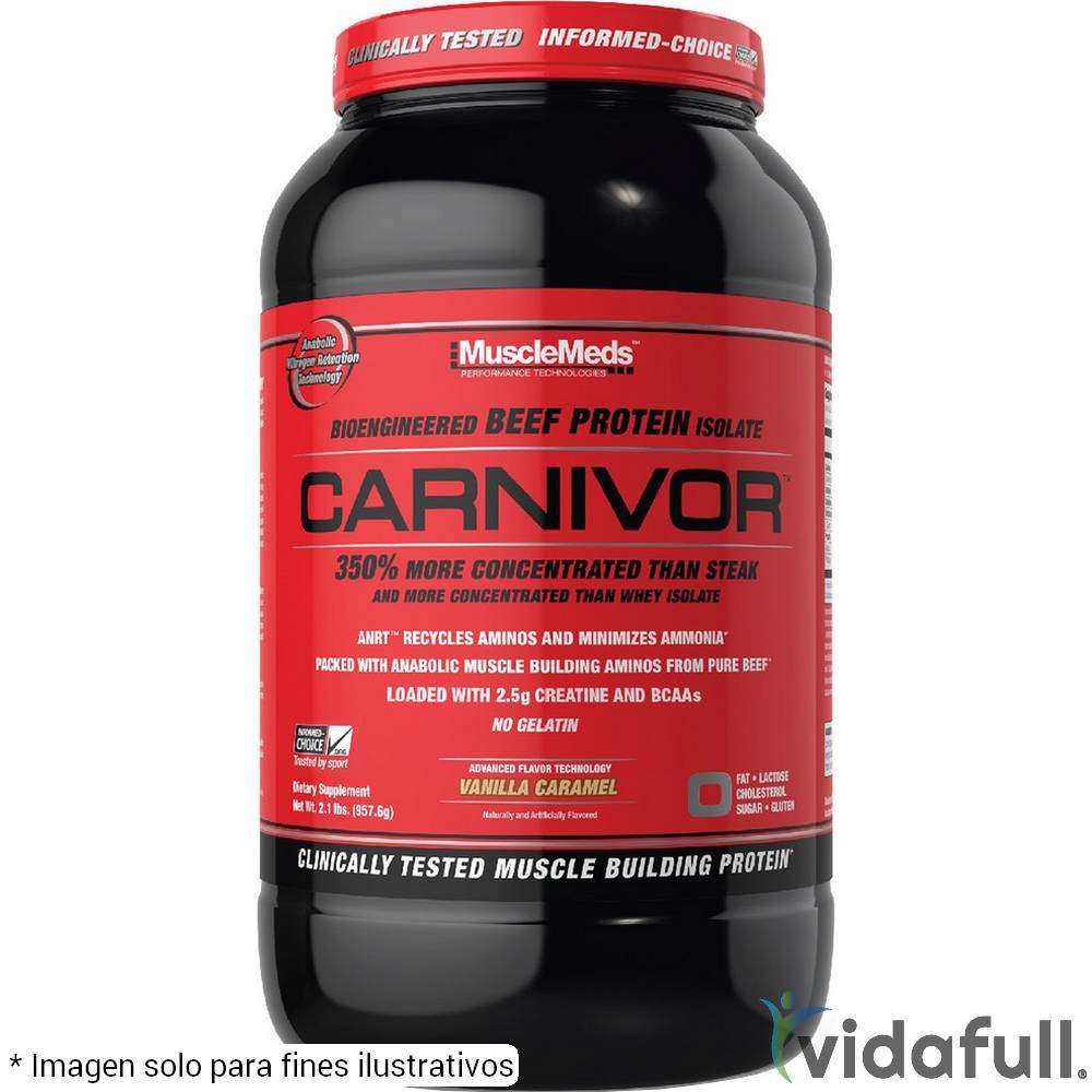 La Proteína Carnivor Proteína brinda todo el poder de desarrollo muscular de la carne de res con mayores niveles de aminoácidos que otras fuentes de proteínas utilizadas en suplementos, incluidos el suero de leche, la soya, la leche y el huevo. Carnivor Proteína Musclemeds es incluso un 350 % más concentrado en aminoácidos anabólicos para el desarrollo muscular que un filete de solomillo de primera calidad. ¡Además, es sin azúcar, sin grasa, sin lactosa y sin colesterol! ¡Sin mencionar que Carnivor Proteína es uno de los batidos de proteínas más deliciosos que jamás haya probado!