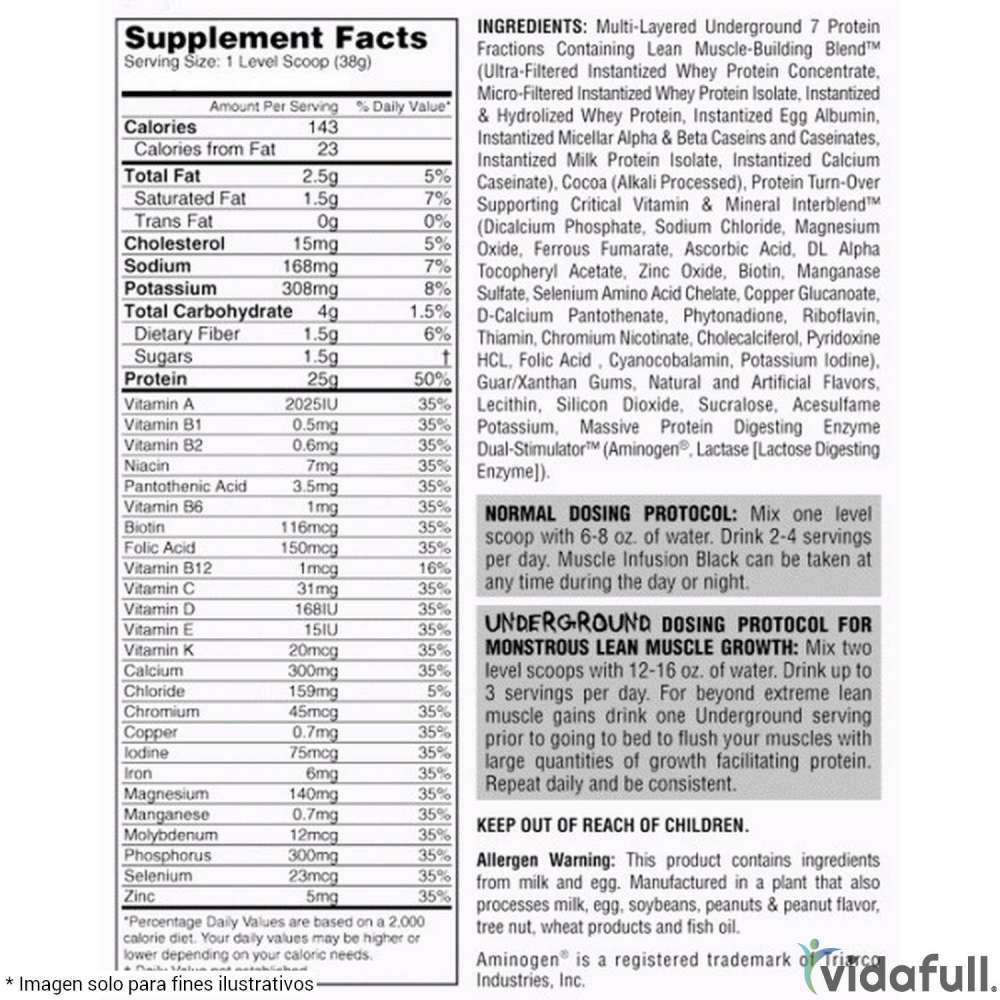 Muscle Infusion Black Proteina de multiples etapas, mezcla de siete tipos de proteinas, con efectos de accion rapida y prolongada.
