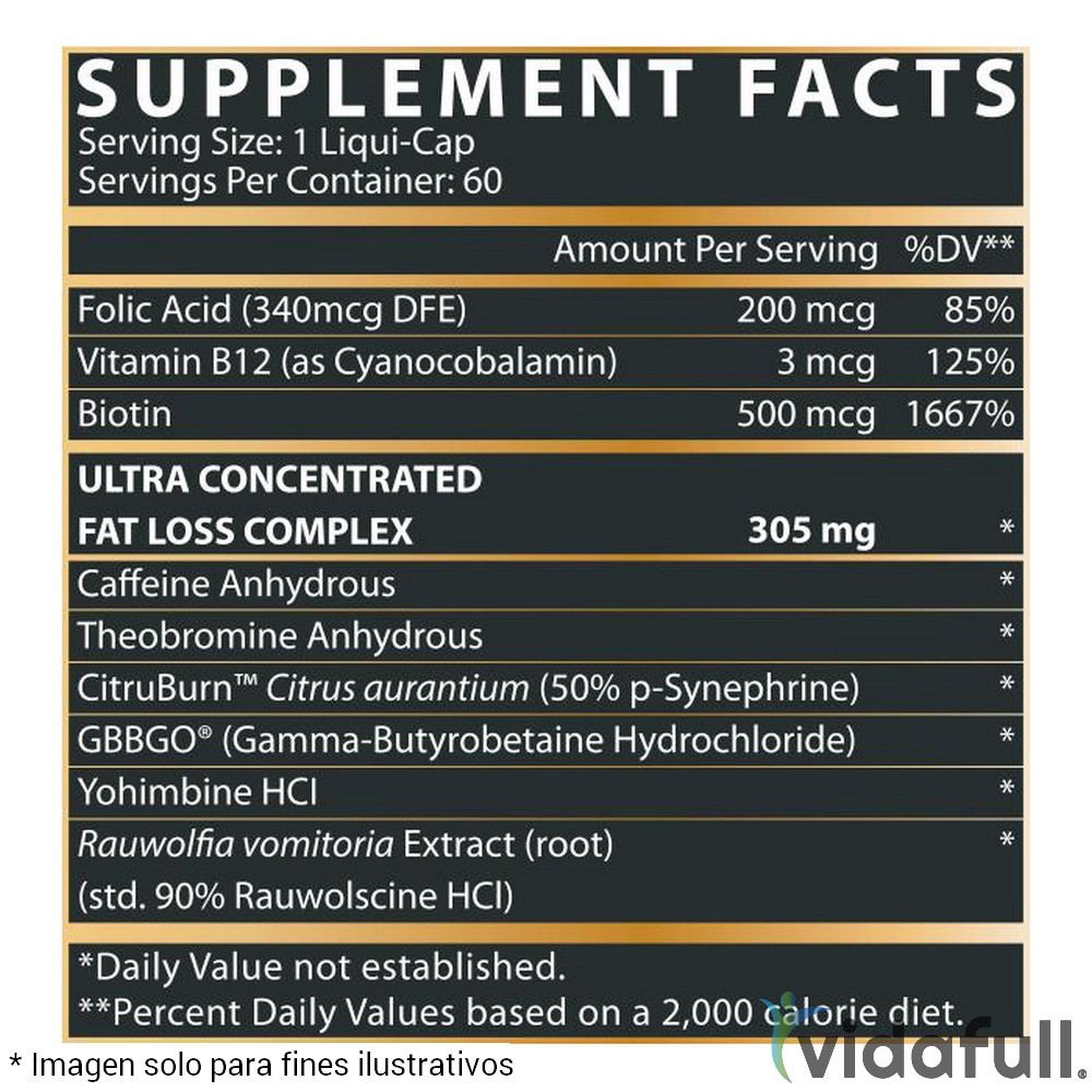 - Capsaicina: 5 mg por dosis, ayuda a quemar grasa.