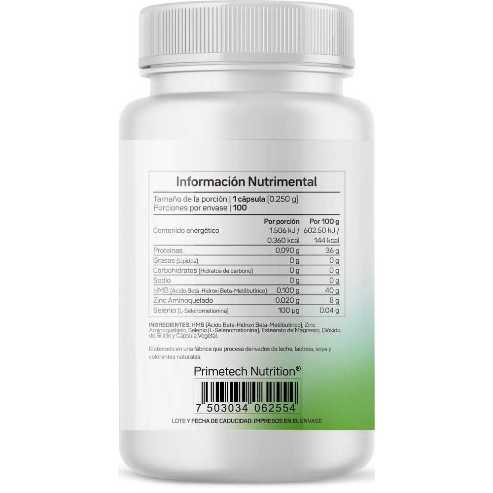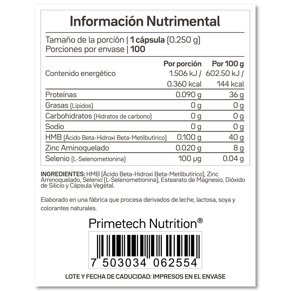 El HMB ó Ácido Beta-Hidroxi Beta-Metilbutírico principalmente ayuda al sistema musculo esquelético, disminuyendo el catabolismo muscular y aumentando la síntesis de proteínas. Es recomendado junto con una alimentación sana y proteína de alta calidad para deportistas y personas mayores que quieran evitar la degradación muscular.